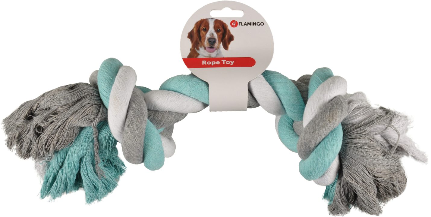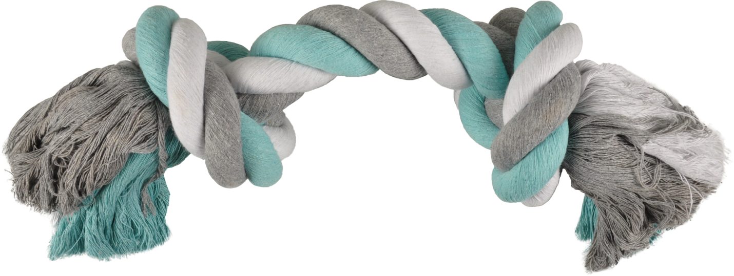 The HS Cotton Jim Knotbone is perfect for your furry friend! Made from soft cotton, it helps prevent plaque and massages the gums. Available in cool colours: mint, white, and grey. Jumbo size of 48 cm for extra playtime fun!