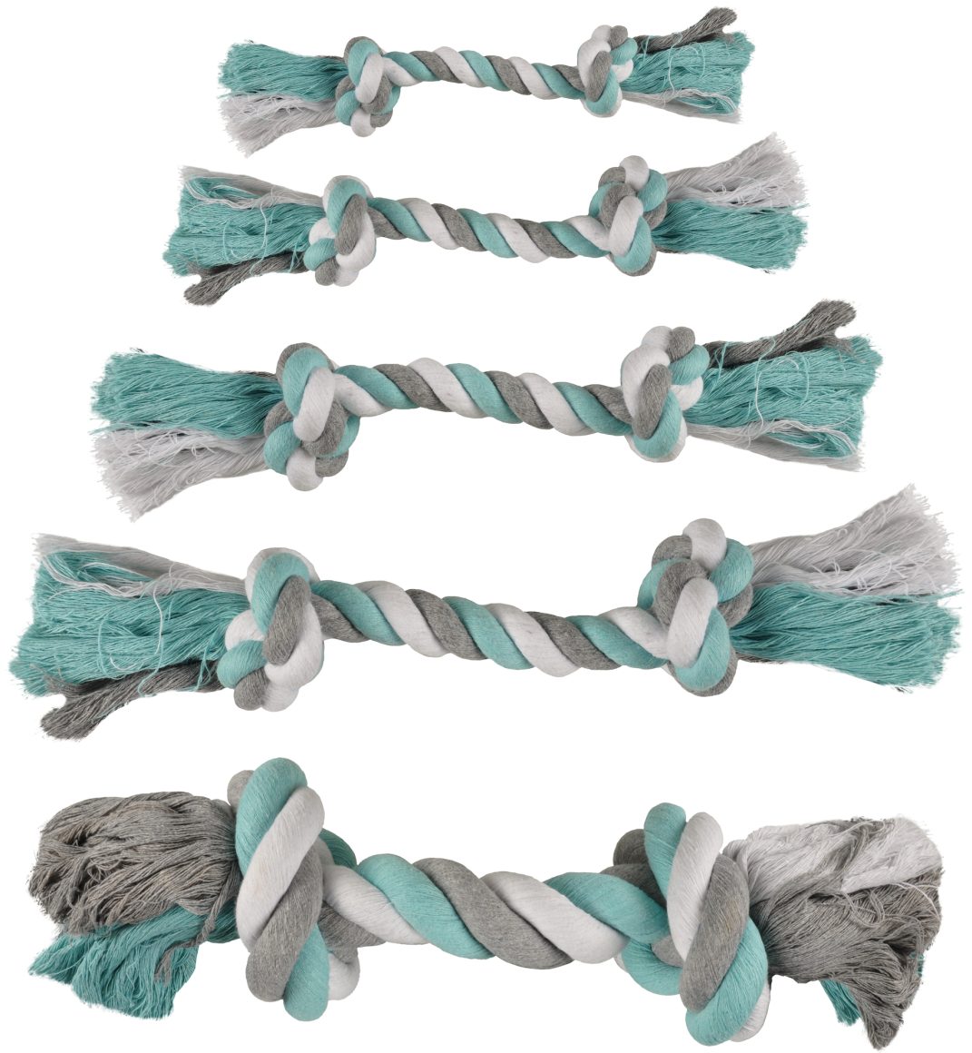 The HS Cotton Jim Knotbone is perfect for your furry friend! Made from soft cotton, it helps prevent plaque and massages the gums. Available in mint, white, and grey colors, and comes in XL size (39cm).