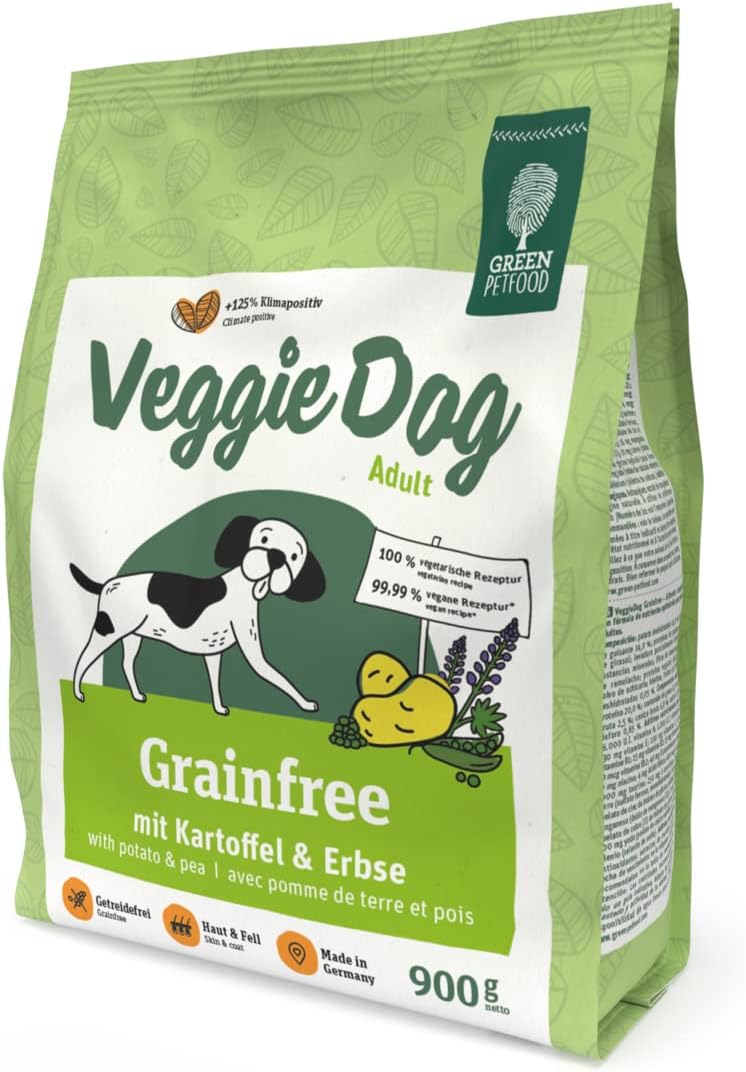 So tasty, so good, so veggie: our Green Petfood with Potato & Pea with a grain-free recipe provides dogs with everything they need every day. And all without meat — but with peas and potatoes. The food in our VeggieDog range ensures good vibes in the bowl. Because it tastes great too!