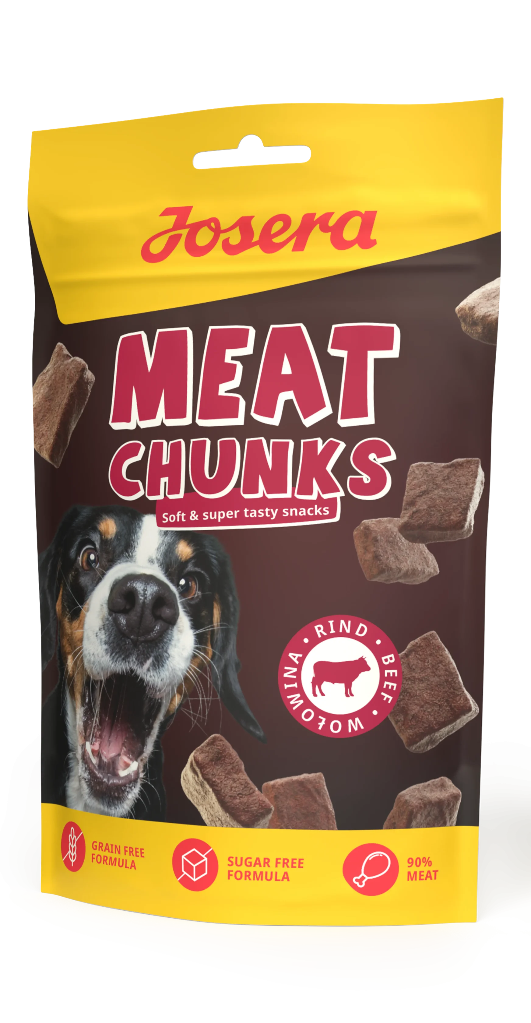 Josera Meat Chunks are the ultimate bite-sized reward for your dog – with an impressive 90% meat content and irresistible flavour in every chunk. These gently dried, pre-portioned treats are packed with premium protein from chicken, beef, or turkey, making them a favourite among even the pickiest pups. Formulated without grain or added sugar, they’re a guilt-free choice that’s easy to digest. Enriched with vitamin E and L-carnitine, these tasty morsels help support active dogs in their daily adventures. Whether for training, rewarding, or just showing some love – every bite is a treat!