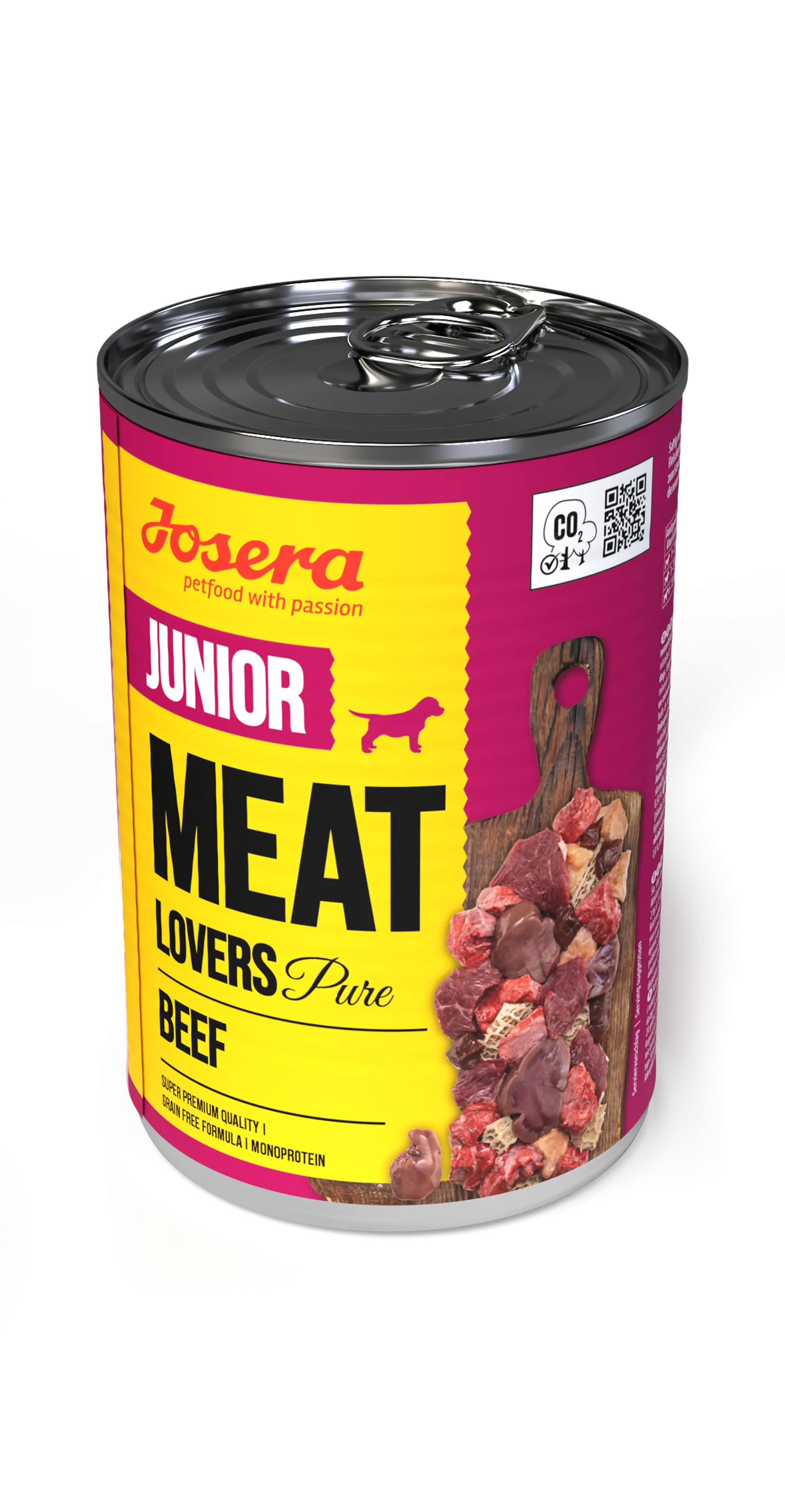 So small — but already such great flavour! It’s finally here: our Meat Lovers Junior Pure Beef 400 g for growing dogs. Mmm, it’s everything a youngster could want. That’s because the key ingredient in our Junior range is the one thing our furry friends adore: delicious meat! Junior Pure Beef contains exclusively what it says on the tin: plenty of beef and fantastic flavour, and no artificial additives or grains. Suitable from 6 weeks of age, salmon oil also provides vital omega-3 fatty acids as our four-legged friends grow.