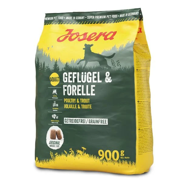 Dried poultry protein, dried sweet potato, pea flour, poultry fat, potato protein, sugar beet pulp, dried trout protein, hydrolyzed poultry protein, yeast, apple fiber, carob flour, minerals, herbs, fruits, chicory root (natural source of inulin) and dried meat of the New Zealand green-lipped mussel (Perna canaliculus).