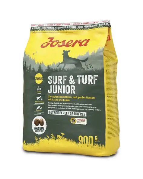With high-quality protein from lamb and salmon, the Josera Surf & Turf Junior offers growing dogs a healthy and tasty option for every day. The feed contains all the necessary nutrients for healthy growth.