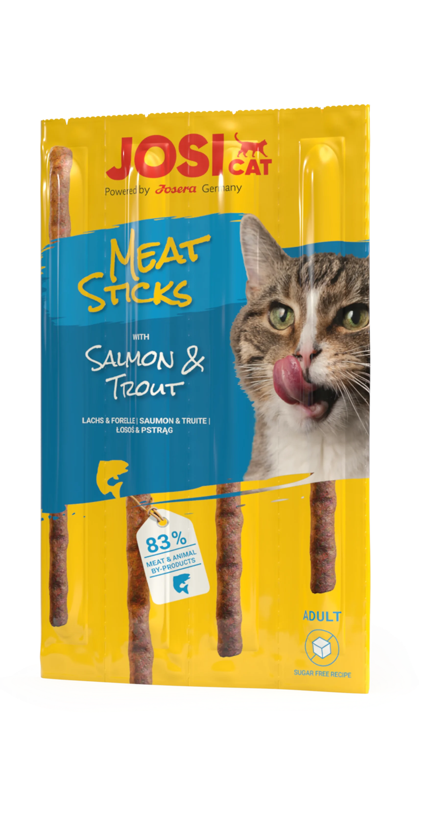 For our favourite felines: soft, juicy, and oh-so-tasty! JosiCat Meat Sticks are the ultimate reward for cats who crave bold flavour and tender texture. Whether it’s the rich taste of Beef & Lamb, the savoury duo of Chicken & Duck, or the fishy goodness of Salmon & Trout, each variety is made with a high meat content and no added grain or sugar — just pure snack satisfaction. These tasty chews are packed with essential vitamins, smell absolutely irresistible, and come individually wrapped in a handy tear-open pack. Perfect for everyday rewards, little indulgences, or snack time on the go!