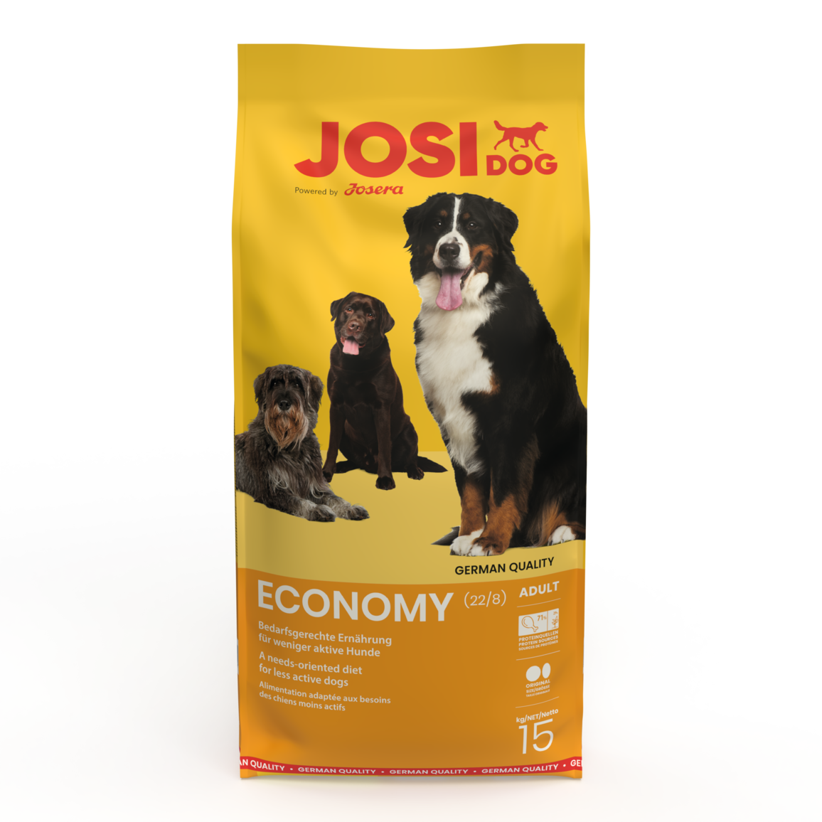 Our JosiDog Economy dog food is suitable for four-legged friends with normal energy requirements. The kibbles are crunchy bites that are really chewy and taste great. This adult dog food will fill any dog’s tummy – its high tolerance level makes it a very popular choice.